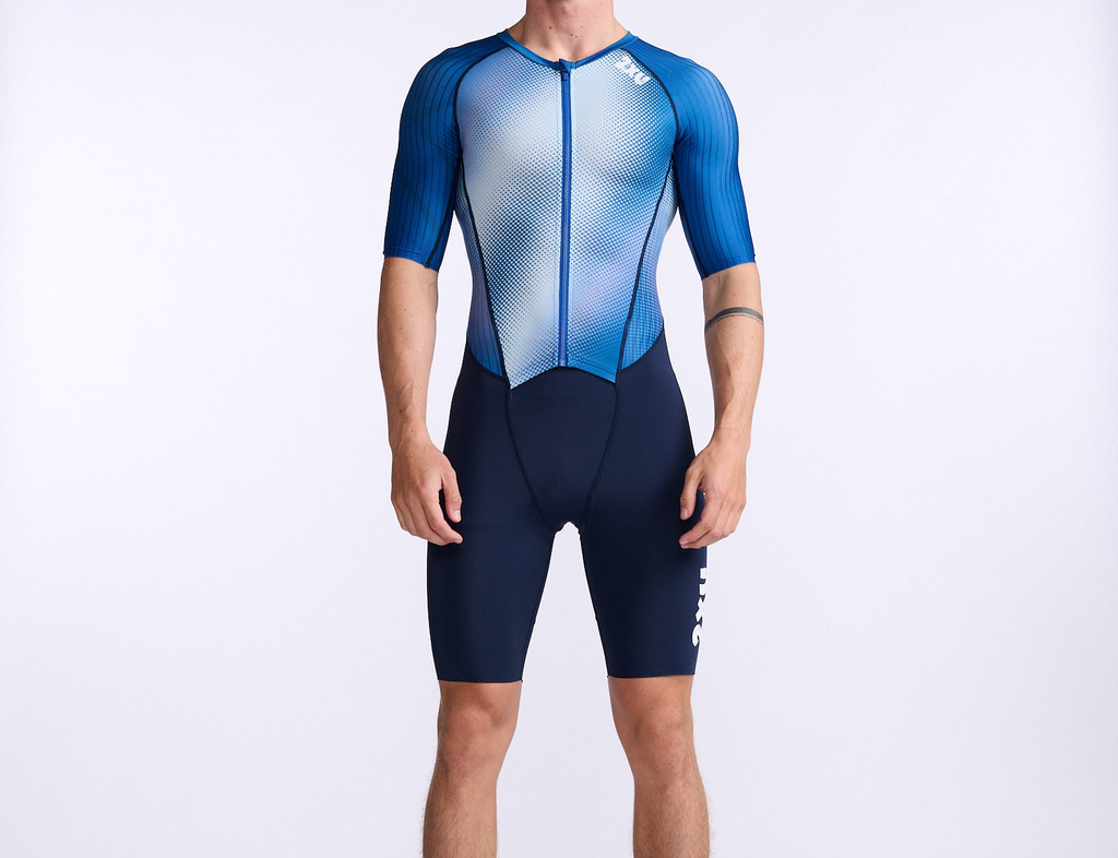 2XU Aero Trisuit Korte Mouw Wit/blauw Heren
