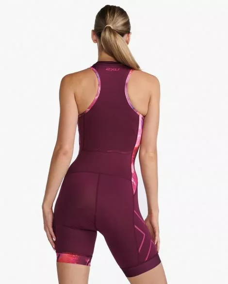 Het 2XU Aero trisuit korte mouw is in de schouders en zijpanelen voorzien van een 3D structuur en een naadloze mouwafwerking van SBR channel.