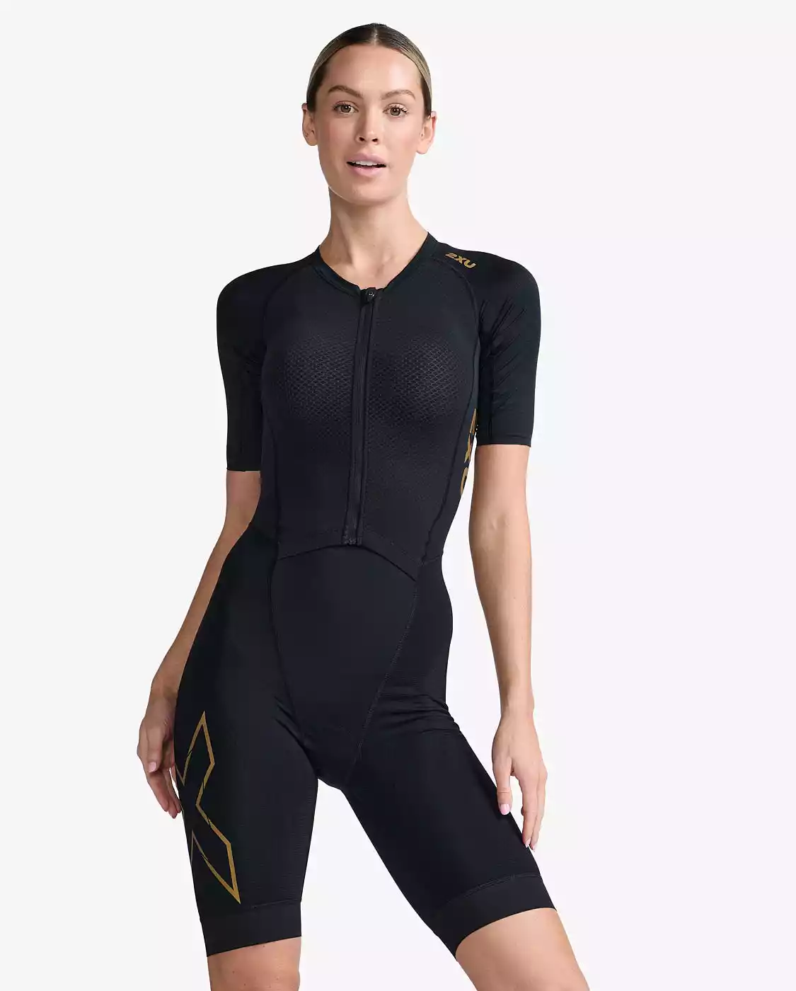 Het 2XU Light speed trisuit korte mouw biedt ongeëvenaarde aerodynamica, warmte dempende technologie en superieure spier stabilisatie.