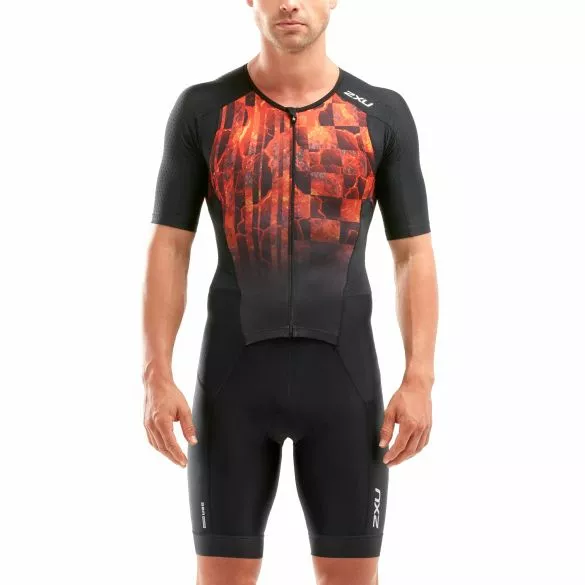 2XU Perform Korte Mouw Trisuit Zwart/rood Heren