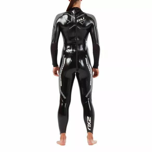 De 2XU Propel pro lange mouw wetsuit zwart/zilver dames levert superieure snelheid en flexibiliteit en is het ultieme wetsuit voor de elite triatleet.