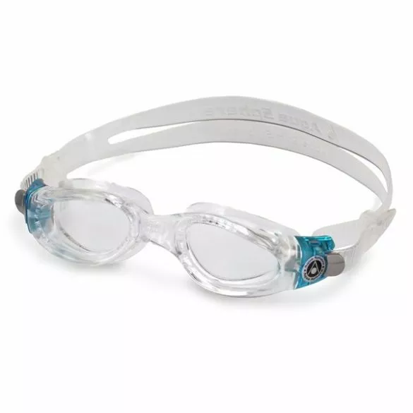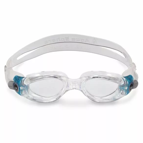 Deze Aqua Sphere Kaiman transparante lens small fit zwembril aqua/wit heeft donkere glazen en een gekleurd frame.