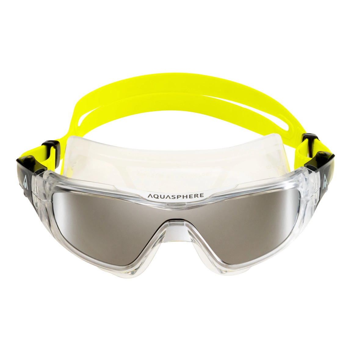 De Aqua Sphere Vista Pro Titanium mirror lens zwembril biedt een 180 graden panoramisch gezichtsveld dankzij de gebogen enkele lens.