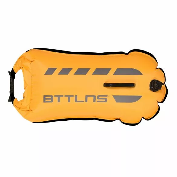 De BTTLNS Kronos 1.0 Saferswimmer zwemboei 28 liter verhoogd de veiligheid tijdens het open water zwemmen door het gebruik van felle kleuren.