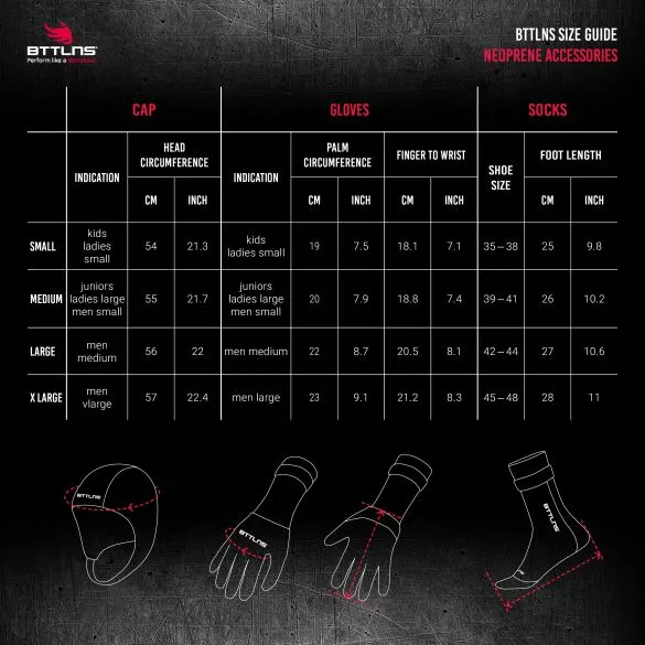BTTLNS Neopreen Accessoires Voordeelset -Goedkope Sport Glans Winkel bttlns size guide neoprene cap gloves socks 8