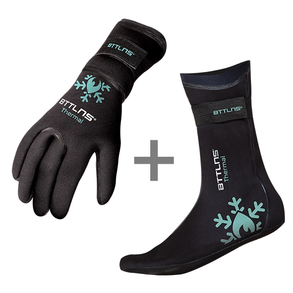 De BTTLNS Neopreen thermal zwemhandschoenen en de Neopreen thermal zwemsokken zijn ideaal als u graag minder snel koude handen en voeten krijgt tijdens het openwater zwemmen met een lagere water temperatuur.