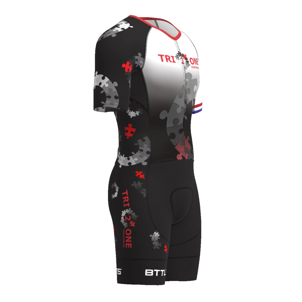 Dit BTTLNS Typhon 2.0 trisuit korte mouw is voorzien van een uniek design en is speciaal ontworpen voor tri2one coaching.