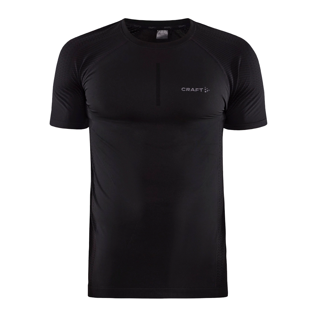 Dit T-shirt is geproduceerd van gerecycled polyester en heeft een naadloze constructie met een lichaamsvormende structuur voor een optimale ventilatie in warme omstandigheden.