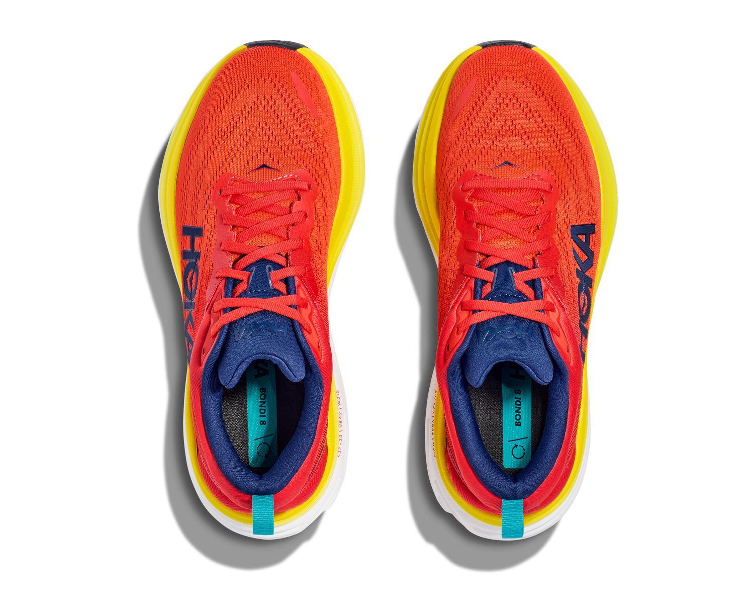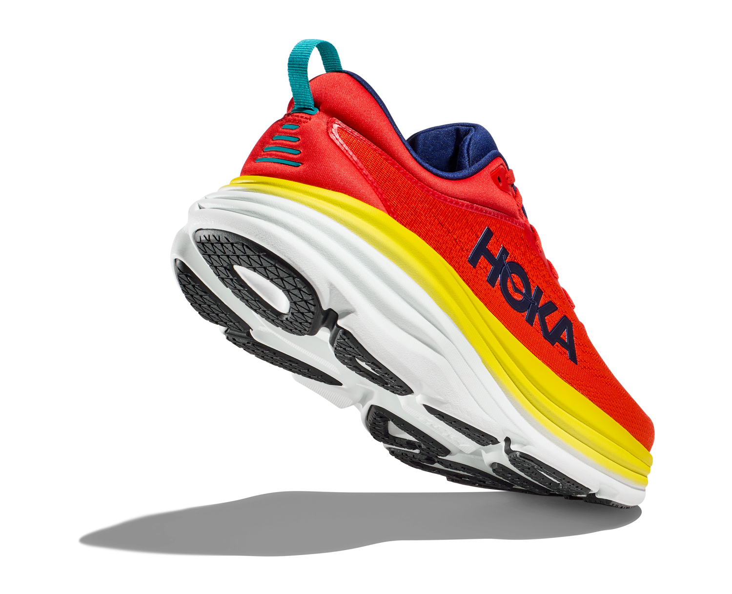 De Bondi 8 heeft een aantal updates gekregen zoals een vernieuwede en verlengde hiel, wat zorgt voor meer stabiliteit en maakt de schoen soepeler.