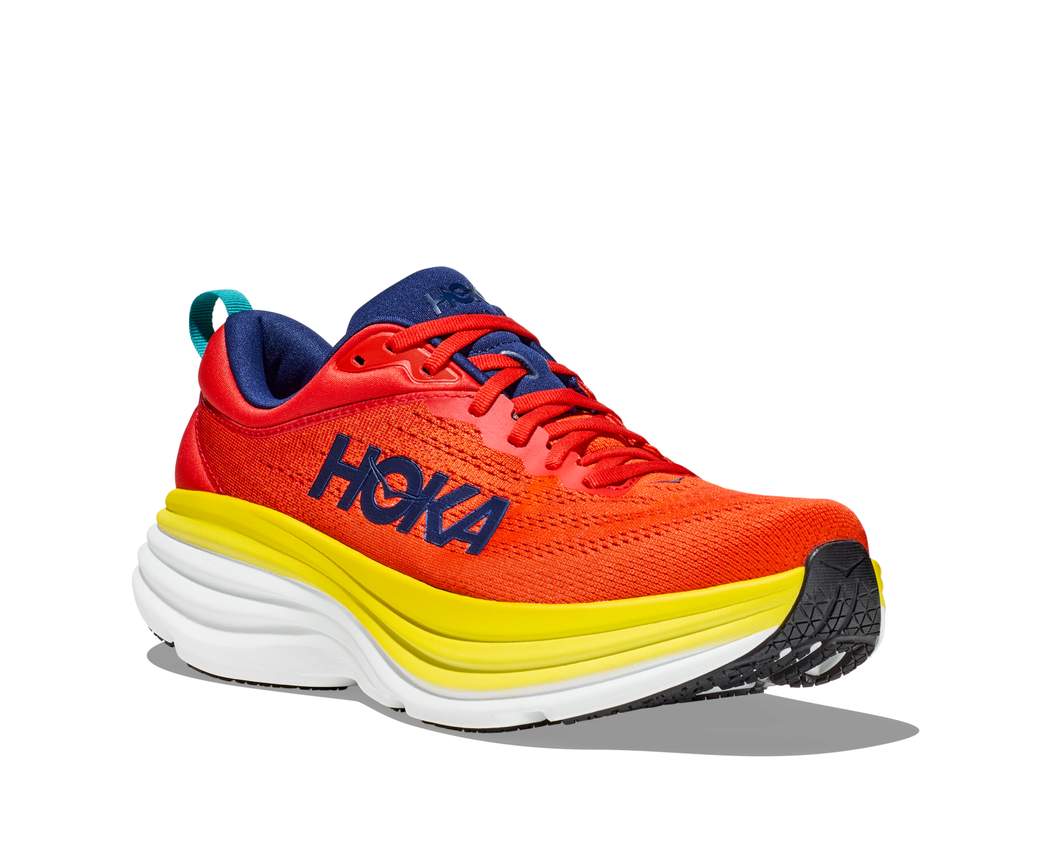 De innovatieve Hoka Bondi 8 hardloopschoenen zijnde meest gedempte hardloopschoen in de Hoka one lijn en biedt een comfortabel, evenwichtig gevoel over elke afstand.