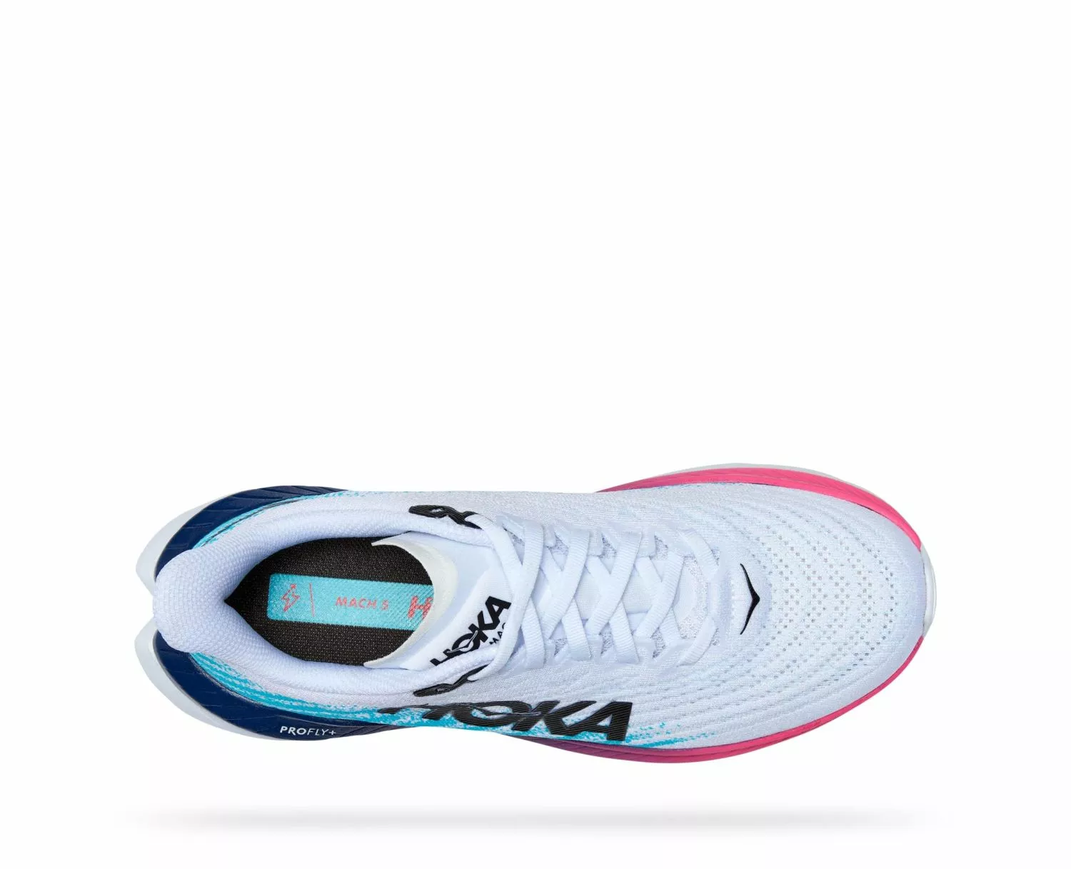 Hoka One One Hoka Mach 5 Hardloopschoenen Wit/blauw Dames