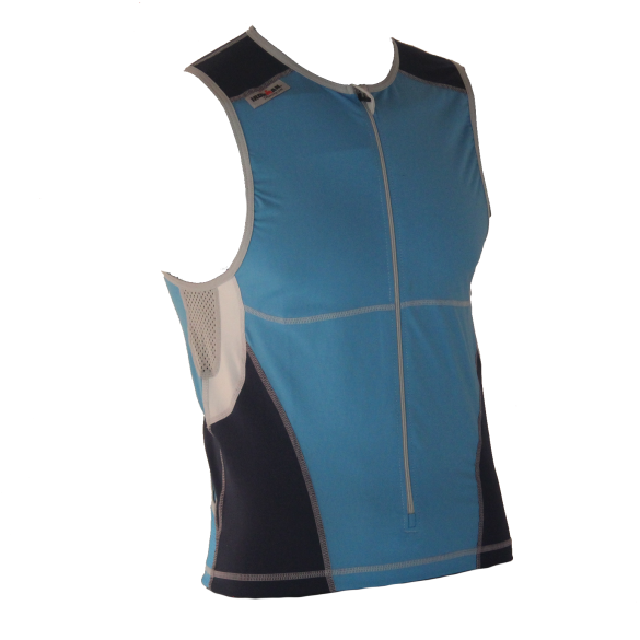 Ironman Tri Top Front Zip Mouwloos Bodysuit Blauw Heren