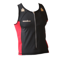 Ironman tri top front zip mouwloos T-zip zwart/rood heren