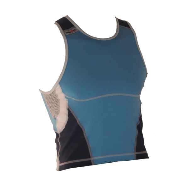 De Ironman tri top mouwloos new olympic blauw heren is de verbeterde versie van de populaire olympic tri top van Ironman.