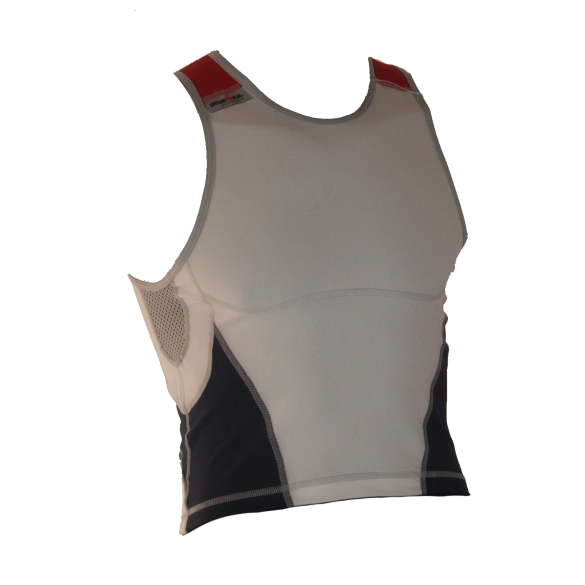 De Ironman tri top mouwloos new olympic wit/blauw heren is de verbeterde versie van de populaire olympic tri top van Ironman.