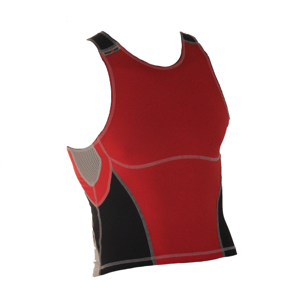 De Ironman tri top mouwloos olympic rood/zwart heren is een hoog kwaliteits- en licht van gewicht triatlon top ontworpen voor de olympische afstanden.