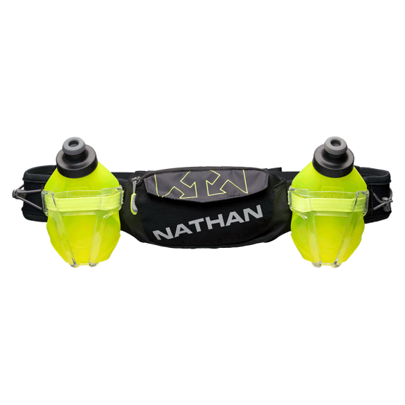 De Trail mix plus is een sterke heupgordel met 2 reflecterende flessen van 300 ml die makkelijk met 1 handbeweging uit het holster te halen zijn.