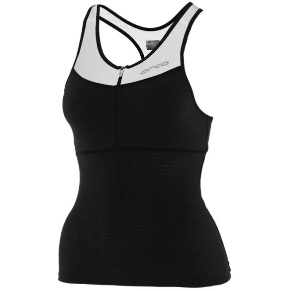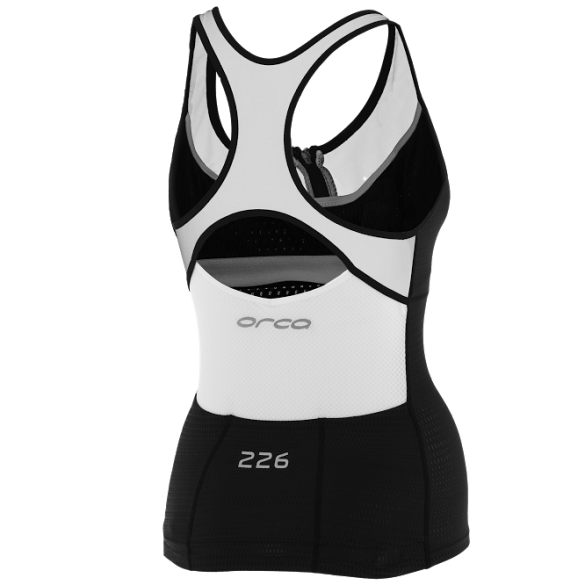 Zeer functionele top, optisch ver voor op zijn voorgangers, de Orca 226 tri top zwart/wit dames benadrukt de vrouwelijke kant van de sport en heeft een perfecte pasvorm.