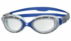 De Zoggs Predator flex 2.0 zwembril zilver/blauw brengt u de unieke 4 Flexpoint technologie voor verbeterde frame flexibiliteit en een gecontourde comfortabele pasvorm.