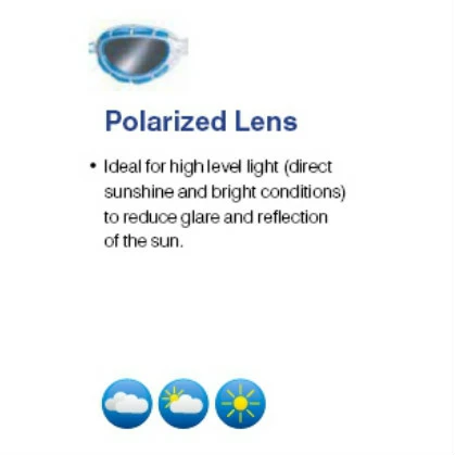 De gepolariseerde Ultra Reactor Photochromatic-lenzen reageren op de zonnestralen, waardoor een donkere en meer beschermende tint ontstaat in heldere omstandigheden, en volledige helderheid in donkere omgevingen.